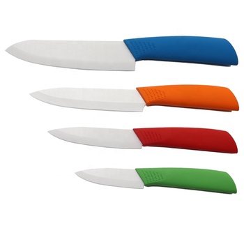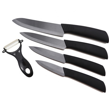 Juego de cuchillos de cocina con hoja afilada, 4 piezas, mango de PP y TPR, juego de cuchillos de cerámica con funda